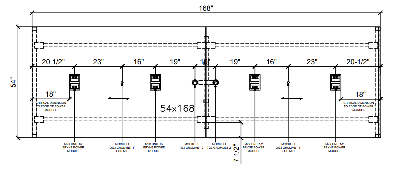 54”d x 168”w